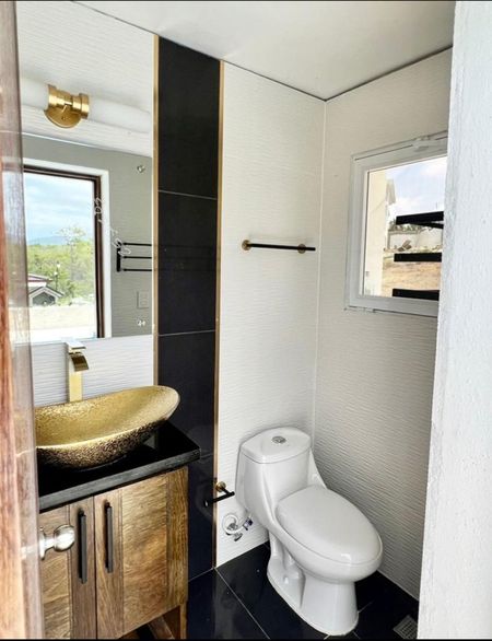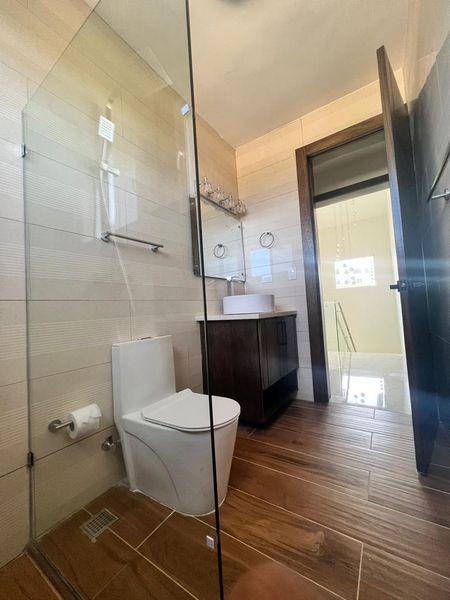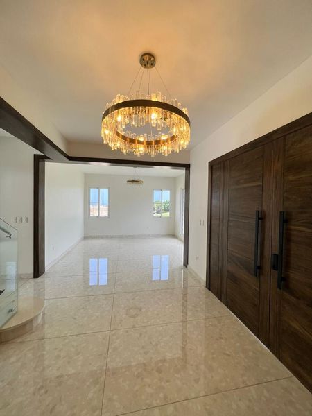 Todas las puertas son a 8 pies de altura, bisagras ocultas, tiradores de primera, escalera de Mármol, Piso de Porcelanato de calidad de 90X180, Ebanistería de primera en Roble Brasileño y cedro en el closet de la habitación principal. Abanicos y aire acondicionado en las 4 habitaciones, Estufa empotrada, nevera, iluminación de primera, cristales templados en la casa completa, techos inclinados y con tejas gravilladas, balcón frontal, 2 baños en el 2do nivel, 01 baño en el 1er nivel más el medio baño para la piscina, vista al mar a la distancia y vista a las montañas. Ubicada en el complejo Sea View, en The Palms At Star Hills, Av. Circunvalación Sur, Puerto Plata, Rep. Dom